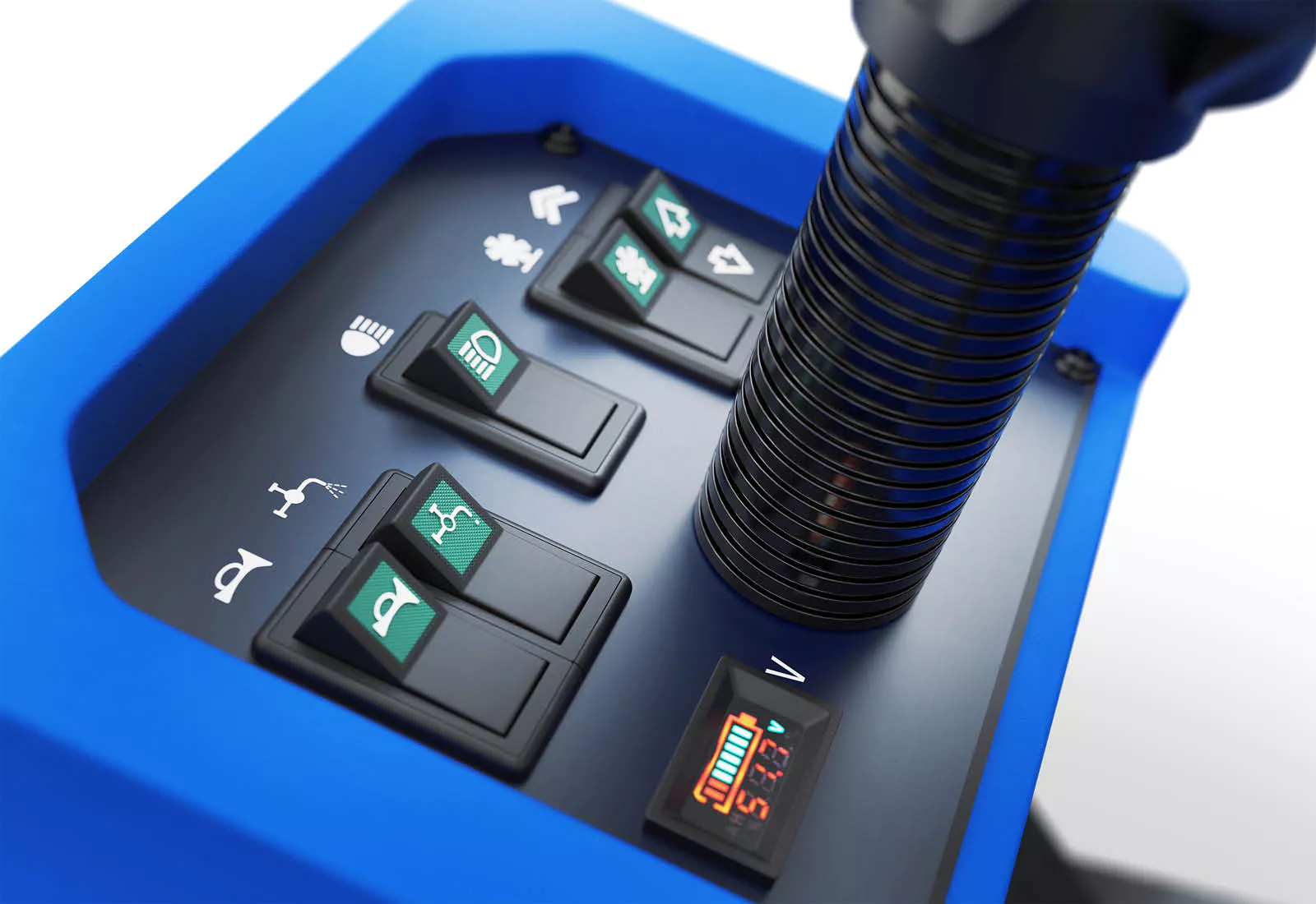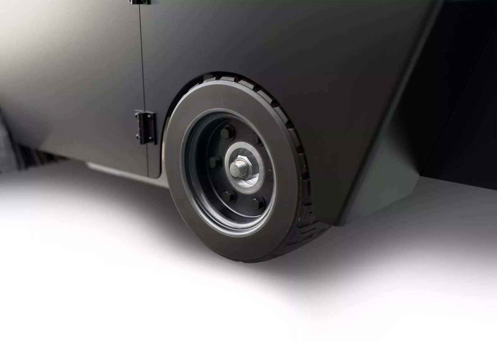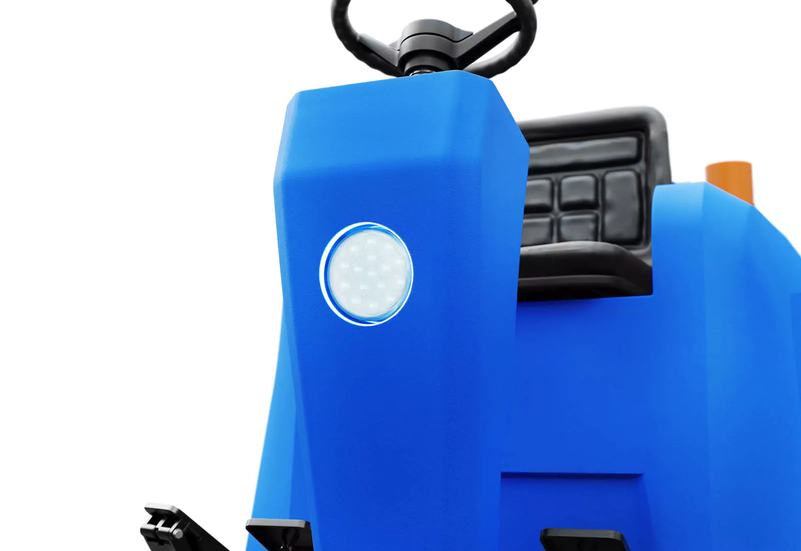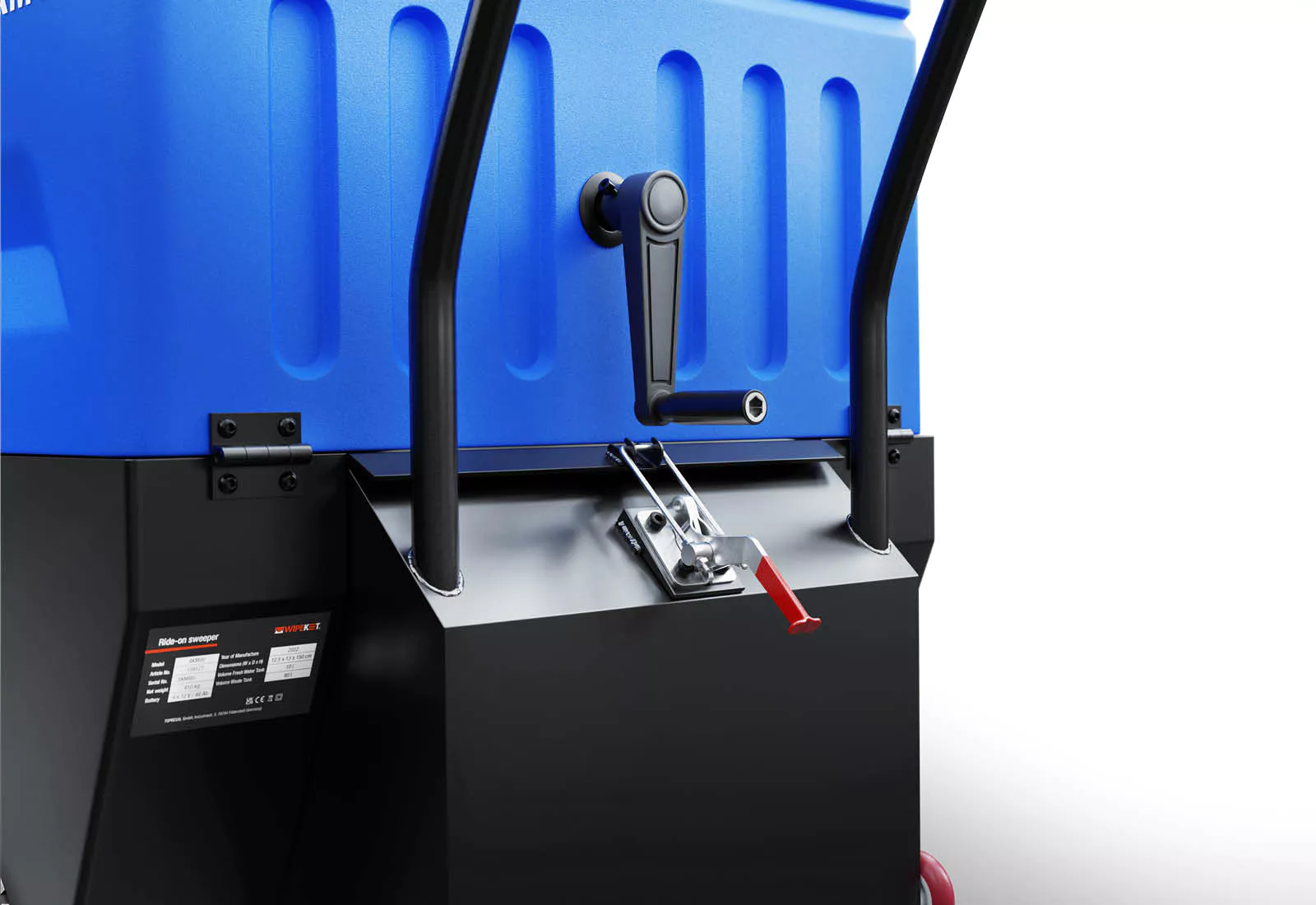 Con la AKM80, la limpieza sin residuos de superficies interiores y exteriores no supone ningún problema. La gran barredora con conductor a bordo puede equiparse con 10 litros de agua fresca que pulveriza el suelo. Esta tecnología evita que el polvo se arremoline, y toda la suciedad se transporta en poco tiempo al gran depósito de polvo de 80 litros. De ello se encargan los tres cepillos que, gracias a su inteligente disposición, alcanzan una anchura total de limpieza de 1.250 mm. Los cepillos laterales, con un diámetro de 400 mm, transportan toda la suciedad por debajo de la máquina, mientras que el largo cepillo principal se encarga de transportar los residuos al depósito de polvo. Esto sólo es posible gracias a la alta velocidad de rotación de hasta 1.800 rpm. La compacta máquina de limpieza (1.120 mm x 1.500 mm x 1.300 mm) y su bajo peso de 396 kg, combinados con una alta potencia de accionamiento de 800 W, permiten una velocidad máxima de 8 km/h. Esto proporciona a la barredora con conductor a bordo AKM80 una capacidad de limpieza efectiva de 8.400 m²/h. Esto permite una limpieza muy eficaz de grandes superficies. La brillante iluminación frontal le permite barrer con la máquina incluso en la oscuridad.