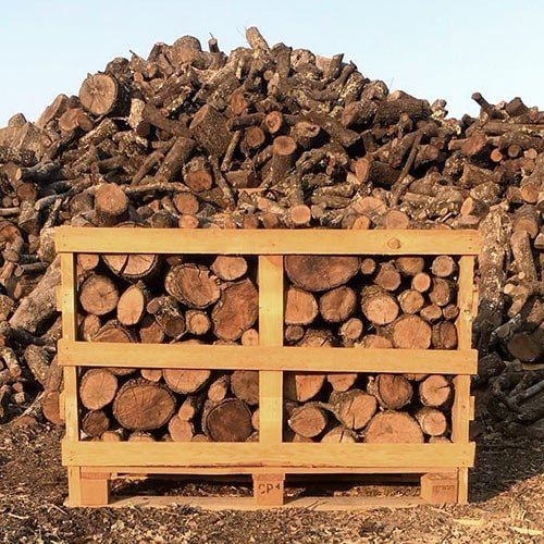 La leña de encina es una leña dura y consistente, de alto peso especifico y gran poder calorífico. Al quemar a más temperatura proporciona mucho calor y gracias a su dureza se consigue un fuego duradero.